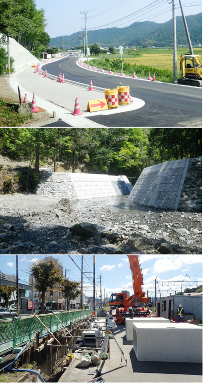 道路、河川、整備など幅広い分野で地域の基盤整備を行っています。丸和土木のこれまでの実績をご紹介します。